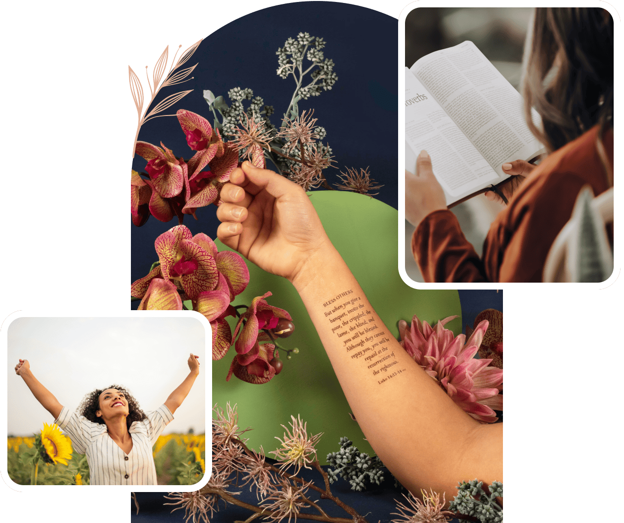 Our mission is to equip you with creative resources that deepen your faith and help you share the gospel in unique and engaging ways. We believe in the power of God's Word and the impact it can have when it's woven into our daily lives. Our temporary Christian tattoos are more than just accessories; they are tools for Scripture memorization, expressions of faith, and conversation starters.